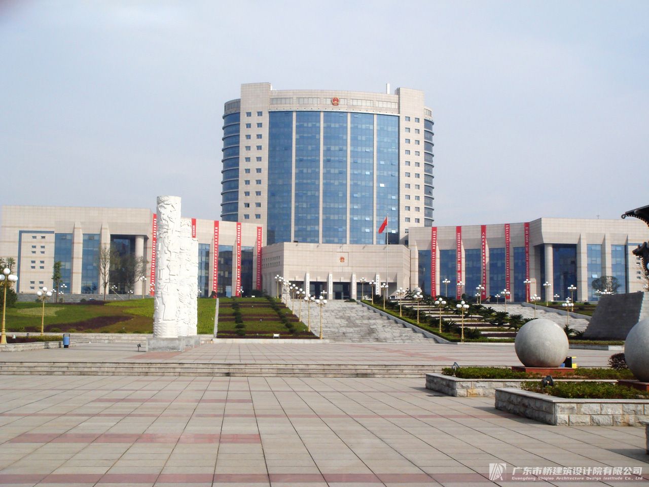 宁乡行政中心由行政大楼(与长沙市建筑设计院合作设计)、后勤服务中心、会议中心组成,用地约20万平方米,建筑面积6万平方米。