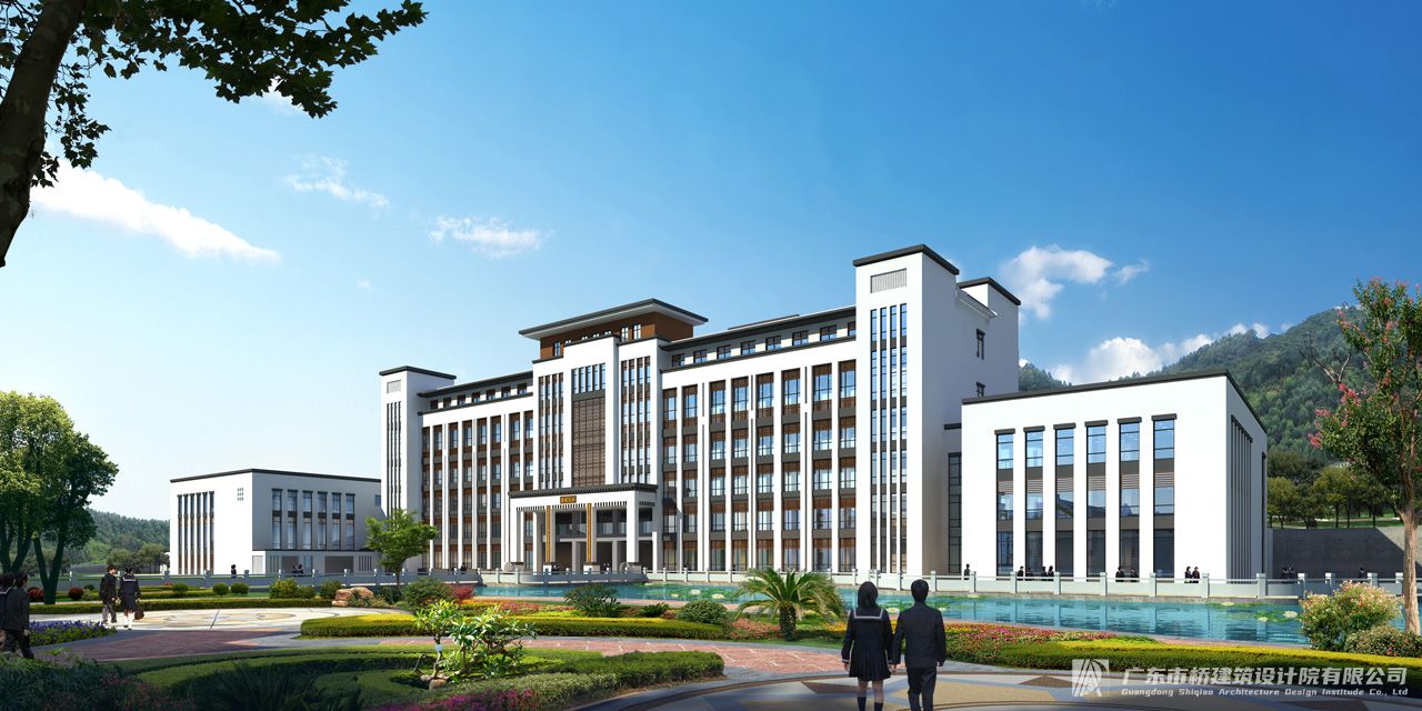在场地西面设置一个停车场入口和一个学校主入口,北面30米规划路设置一个学校次入口和一个体育馆入口,南面设置学校后勤入口,地块内部设置4米宽的消防道路及6米宽的校园道路。